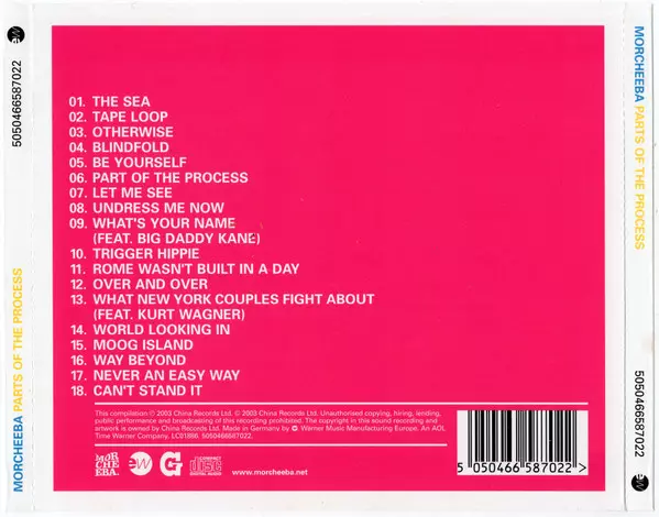 Morcheeba: Parts Of The Process verze na CD v standardní edici. Toto konkrétní vydání vyšlo v Evropě a UK ve vydavatelství EastWest ve spolupráci s G&G Records dne 4. března 2019. Album zasahuje do žánrů Pop, Elektronická hudba a Trip Hop.