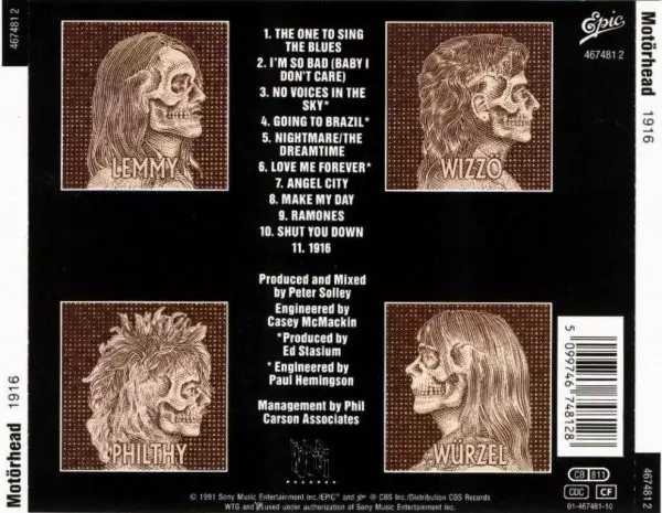 Motörhead 1916 z roku 1991 je album plné energie a síly. Je to album inspirované první světovou válkou a je zřejmé, že kapela byla tímto tématem nadšená. Album je plné heavy metalových hymen, které vám zvednou adrenalin. Texty jsou temné a intenzivní a hudba je hlasitá a do očí bijící. Pokud hledáte album, které vám rozbuší srdce, 1916 je skvěl...