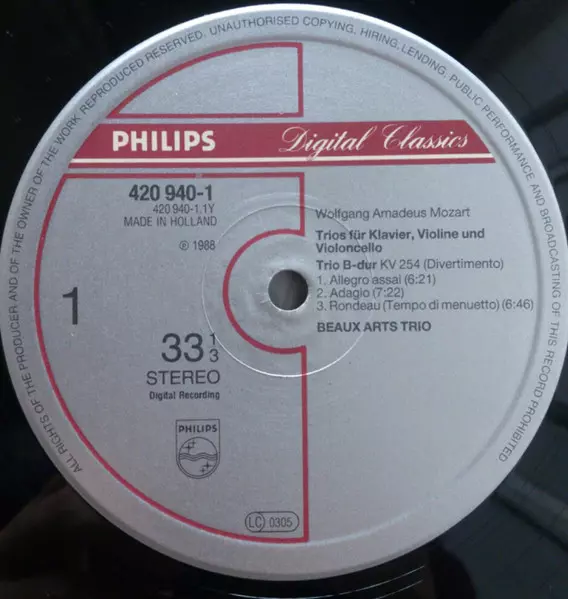 | Interpret | Wolfgang Amadeus Mozart | Beaux Arts Trio |