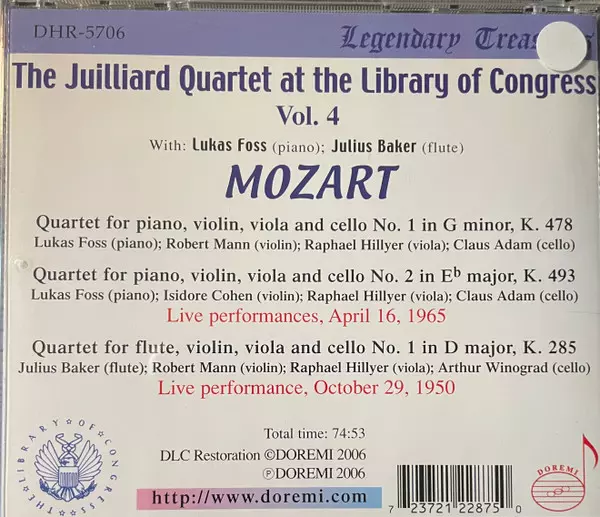 | Interpret | Wolfgang Amadeus Mozart | Juilliard String Quartet | Lukas Foss | Julius Baker |