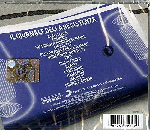 Neffa: Resistenza verze na CD v standardní edici. Toto konkrétní vydání vyšlo v Itálii ve vydavatelství Pisco Music ve spolupráci s Sony Music dne 11. září 2015. Album zasahuje do žánrů Rock, Pop, Blues, Funk / Soul, Rhythm & Blues a Soul.