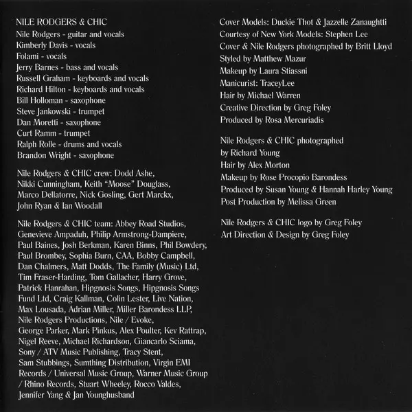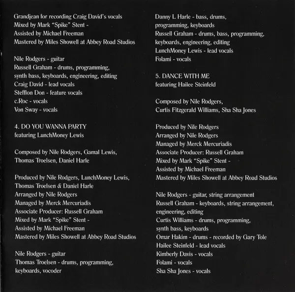 Bass Jerry Barnes | Co-producer [Associate Producer], Arranged By [String], Programmed By Russell Graham (2) | Drum Programming Disclosure (3) | Drums Ralph Rolle | Featuring, Piano, Keyboards, Vibraphone, Vocoder, Programmed By Philippe Saisse | Producer, Arranged By, Guitar, Vocals Nile Rodgers | Written-By Nile Rodgers, Philippe Saisse
