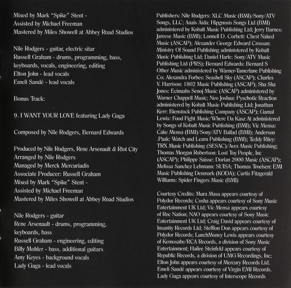 Co-producer [Associate Producer], Drums, Programmed By, Bass, Keyboards, Vocals Russell Graham (2) | Featuring, Lead Vocals Elton John, Emeli Sandé | Producer, Arranged By, Guitar, Electric Guitar Nile Rodgers | Written-By Nile Rodgers