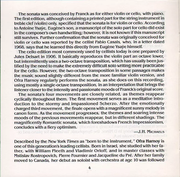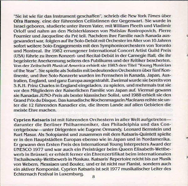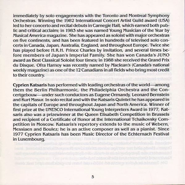 | Interpret | Frédéric Chopin | César Franck | Cyprien Katsaris | Ofra Harnoy |