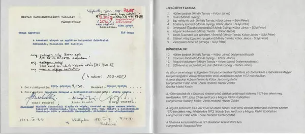 Omega: Élő Omega verze na 4CD/Box Set v remasterované edici. Toto konkrétní vydání vyšlo v Maďarsko ve vydavatelství GrundRecords dne 12. prosince 2022. Album zasahuje do žánrů Rock, Progresivní rock a Folk Rock.