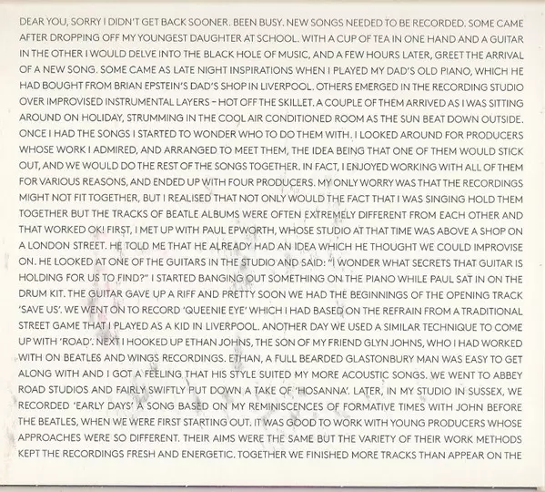Britský hudebník Paul McCartney se bez nadsázky může řadit mezi ty největší hudební legendy. Díky tomu se jeho produkce těší všeobecné popularitě a i po rozpadu The Beatles je jeho sólová kariéra téměř stejně úspěšná jako v době Brouků... Už je to celých šest let, co Paul McCartney vydal sólovou desku s vlastním materiálem. To se ale brzy změní!...
