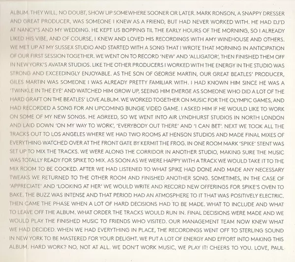 Drums Abraham Laboriel Jr. | Guitar Brian Ray, Rusty Anderson | Keyboards Paul Wickens | Producer Mark Ronson | Written-By, Vocals, Guitar, Bass, Glockenspiel, Percussion, Synthesizer, Celesta Paul McCartney