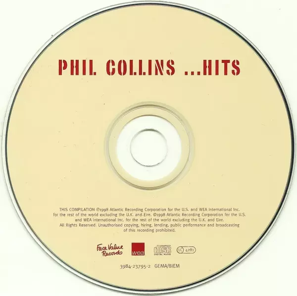 Phil Collins: ...Hits verze na CD v standardní edici. Toto konkrétní vydání vyšlo v Evropě ve vydavatelství WEA ve spolupráci s Face Value Records dne 5. května 2017. Album zasahuje do žánrů Rock a Soft Rock.