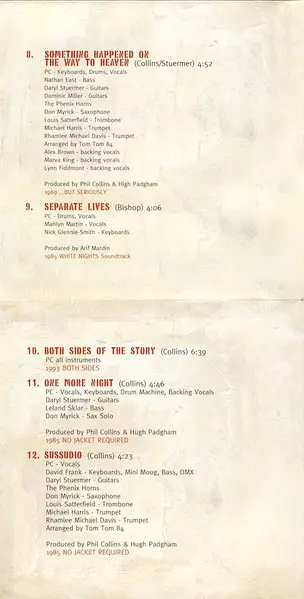 Arranged By Harry Kim, Phil Collins | Bass Nathan East | Drums Phil Collins | Lead Guitar Daryl Stuermer | Producer Hugh Padgham, Phil Collins | Rhythm Guitar Ronnie Caryl | Saxophone Andrew Woolfolk | Trombone Arturo Velasco | Trumpet Dan Fornero, Harry Kim | Vocals Amy Keys, Arnold McCuller, Phil Collins | Written-By Phil Collins