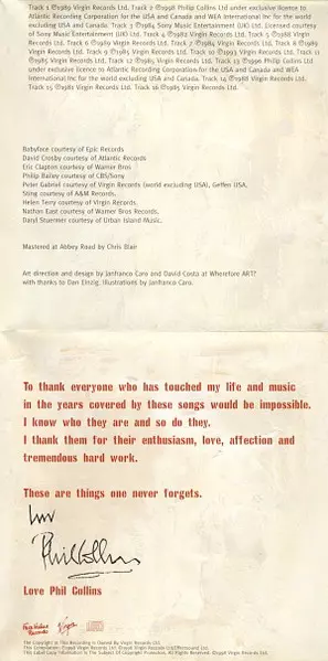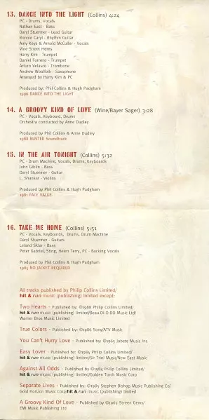 Backing Vocals, Keyboards, Drum Programming, Producer Babyface | Bass Cornelius Mims | Drums, Vocals Phil Collins | Guitar Michael Thompson | Percussion Sheila E. | Piano [Acoustic], Electric Piano [Wurlitzer] Greg Phillinganes | Uilleann Pipes [Ulleann Pipes] Eric Rigler | Written-By Steinberg & Kelly