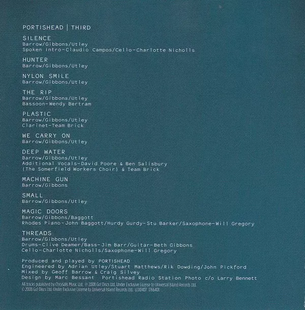 Albový návrat slavného bristolského tria Portishead je jednoznačně hudební událostí jara. Na toto třetí album, nazvané prozaicky „Third” (třetí), si fanoušci museli počkat deset let! Albu předcházel singl Machine Gun, který naznačuje, kam se kapela ubírá - Portishead jsou ještě temnější než dříve, skladby mají až apokalyptický náboj a všemu dominuje nádherně emotivní vokál Beth Gibbons.