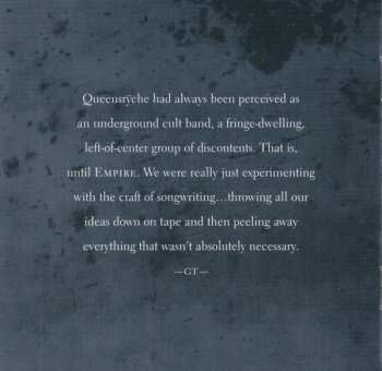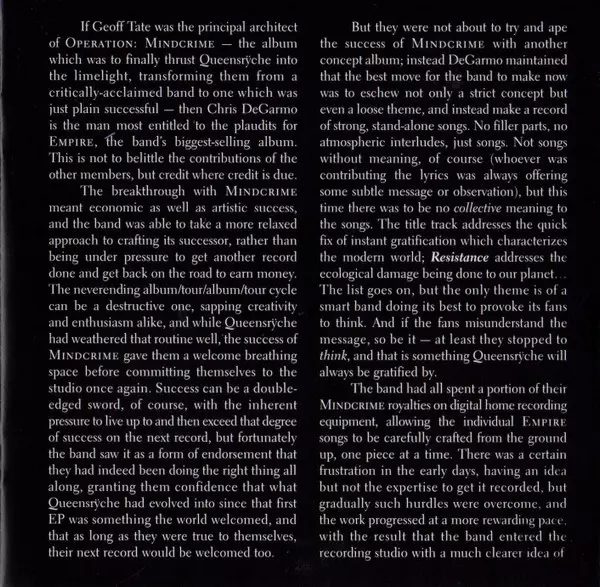 Empire vyšlo 20. srpna 1990 a je dosud komerčně nejúspěšnějším albem skupiny, které dosáhlo trojnásobné platiny. Na desce se objevil hit "Silent Lucidity", který byl nominován na dvě ceny Grammy, a "Jet City Woman". Album, které navazuje na přelomovou desku Operation: Mindcrime, produkoval Peter Collins a nahrávalo se na jaře 1990 ve Washingtonu...