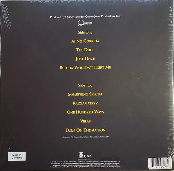 Quincy Jones: The Dude CLR | LTD | NUM verze na vinylu LP v kolorované limitované individuálně číslované remasterované edici. Toto konkrétní vydání vyšlo v Evropě ve vydavatelství UMe ve spolupráci s A&M Records dne 25. října 2024. Album zasahuje do žánrů Elektronická hudba, Funk / Soul, Soul, Funk, Disco a Boogie.