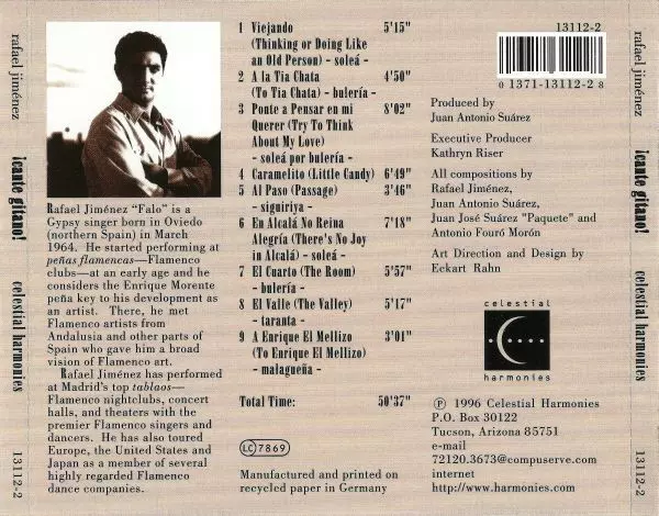 Rafael Jiménez Falo: ¡Cante Gitano! verze na CD v standardní edici. Toto konkrétní vydání vyšlo v USA ve vydavatelství Celestial Harmonies dne 20. července 1998. Album zasahuje do žánrů Folk, World, & Country a Flamenco.