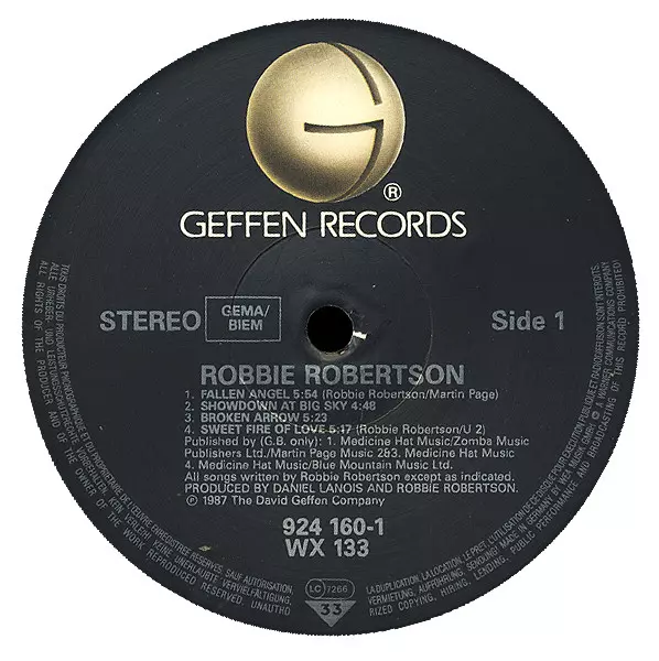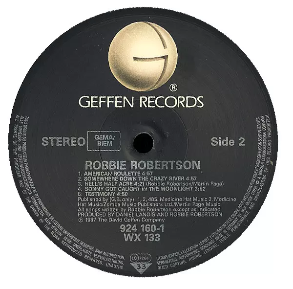 Robbie Robertson: Robbie Robertson verze na vinylu LP v standardní edici. Toto konkrétní vydání vyšlo v Evropě a UK ve vydavatelství Geffen Records roku 1987. Album zasahuje do žánrů Rock a Pop Rock.