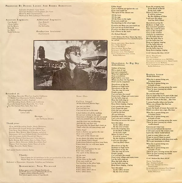 Backing Vocals [Background Vocals] BoDeans | Bass Larry Klein | Drums Manu Katché | Guitar [Guitars], Backing Vocals [Background Vocal] Bill Dillon | Percussion, Backing Vocals [Background Vocal] Daniel Lanois | Vocals [Vocal], Backing Vocals [Background Vocal], Guitar, Soloist [Solo] Robbie Robertson | Written-By Robbie Robertson