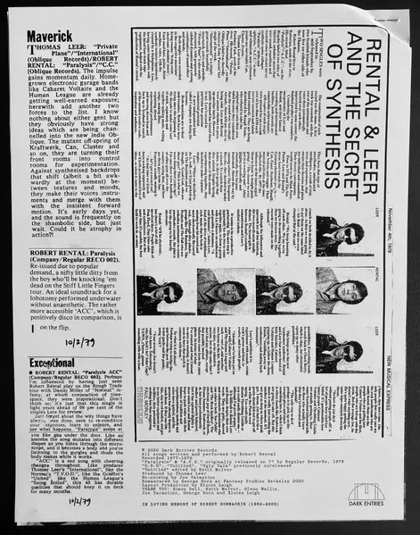 | Upřesnění | Remastered 45 RPM — Dark Entries/Optimo US pressing |