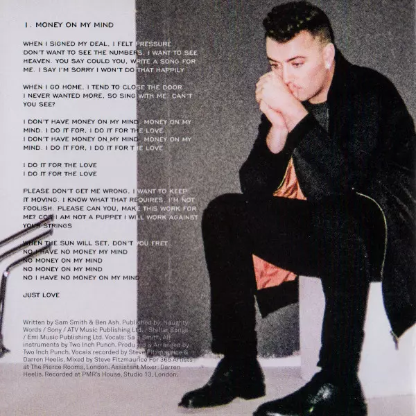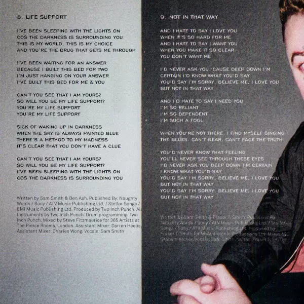 Mixed By Steve Fitzmaurice | Mixed By [Assistant] Charles Wong, Darren Heelis | Producer, Instruments [All], Drum Programming Two Inch Punch | Vocals Sam Smith (12) | Written-By Ben Ash (2), Sam Smith (12)