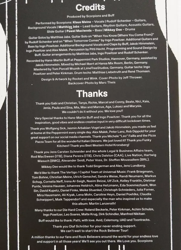 Skupina Scorpions ohlásila na únor 2022 vydání nového alba a následné světové turné. "Rock Believer" je devatenáctým studiovým albem německých rockových legend a prvním novým materiálem od "Return To Forever" z roku 2015.