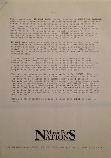 | Vydavatelství | Music For Nations |