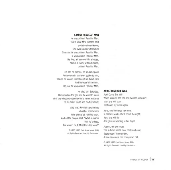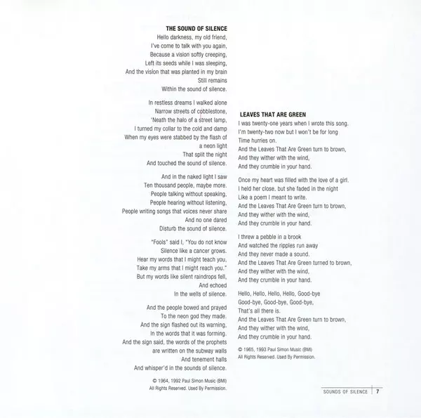 S písněmi "Homeward Bound", "Scarborough Fair", "Mrs. Robinson", "The Boxer", "Bridge Over Troubled Water", "The Sound Of Silence", "I Am A Rock" a mnoha dalšími.