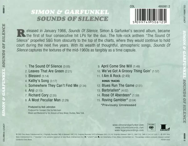 Simon & Garfunkel: Sounds Of Silence verze na CD v standardní edici. Toto konkrétní vydání vyšlo v Evropě ve vydavatelství Columbia ve spolupráci s Legacy dne 25. března 2008.