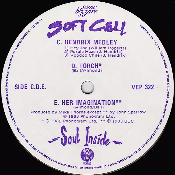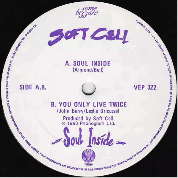 Soft Cell: Soul Inside verze na vinylu LP v standardní edici. Toto konkrétní vydání vyšlo v Kanadě ve vydavatelství Vertigo roku 1983. Album zasahuje do žánrů Pop, Elektronická hudba a Synth-pop.