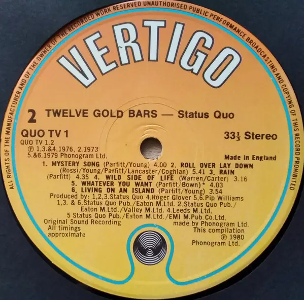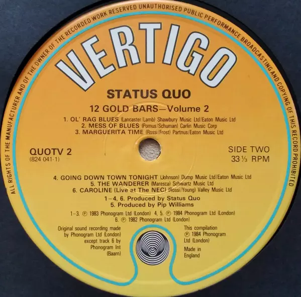 Vertigo 1. prosince 1984 Velká Británie