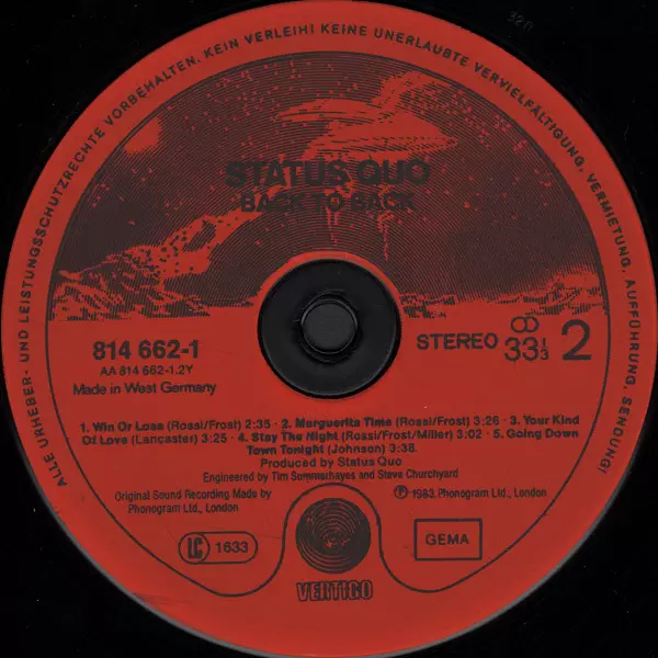 | Upřesnění | Red Vertigo Spaceship Labels Vinyl |