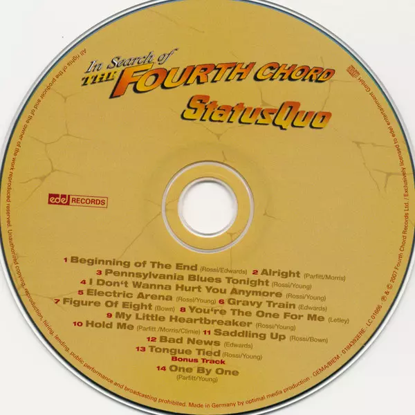 Status Quo - Úspěšný příběh pokračuje! Se 118 miliony prodaných desek a 40 lety koncertní historie jsou jednou z nejúspěšnějších kapel všech dob. Právě včas před svým velkým německým turné, které začíná 18. října, vydávají Status Quo své 33. studiové album "In Search Of The Fourth Chord", které obsahuje 13 zbrusu nových písní a exkluzivní bonuso...