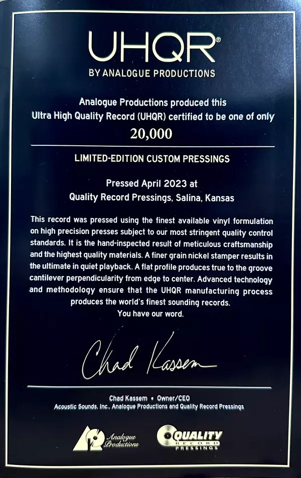| Upřesnění | Uhqr 200g 45 RPM Reissue Numbered High Quality Transparent Clarity Vinyl Deluxe Limited Edition |