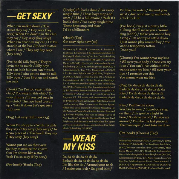 Backing Vocals [Background Vocals] Carlos Battey, Steven Battey | Mixed By Dave Pensado | Mixed By [Additional Vocal Mixing By Assisted By] Richard Edgeler | Mixed By [Additional Vocal Mixing By] Jeremy Wheatley | Mixed By [Assistant Mixer] AJ Nunez | Producer [Additional Vocal Production By] Marcus Byrne, Mike Stevens | Producer, Recorded By [Vocals Recorded By], Instrumentation By, Programmed By, Arranged By [Arrangement By] Fernando Garibay | Written-By Bruno Mars, Carlos Battey, Fernando Garibay, Phillip Lawrence, Steven Battey
