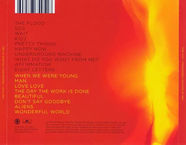 Take That: Progressed verze na 2CD v standardní edici. Toto konkrétní vydání vyšlo v Velké Británii ve vydavatelství Polydor dne 11. listopadu 2013. Album zasahuje do žánrů Pop, Elektronická hudba a Synth-pop.