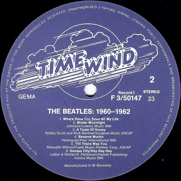 The Beatles: 1960 - 1962 verze na vinylu 3LP v standardní edici. Toto konkrétní vydání vyšlo v Německu ve vydavatelství Time Wind. Album zasahuje do žánrů Rock a Rock & Roll.