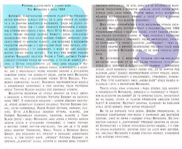 The Matadors: The Matadors verze na MC v remasterované edici. Toto konkrétní vydání vyšlo v Česku ve vydavatelství Bonton roku 1995. Album zasahuje do žánrů Rock, Funk / Soul, Rhythm & Blues, Psychedelický rock, Blues Rock a Rock & Roll. Chromium Dioxide 120 µs.