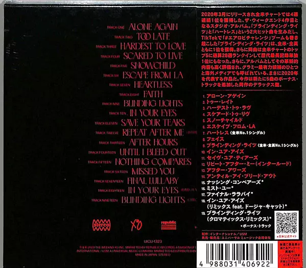The Weeknd: After Hours DLX verze na CD v deluxe edici. Toto konkrétní vydání vyšlo v Japonsku ve vydavatelství XO ve spolupráci s Republic Records dne 4. prosince 2020.