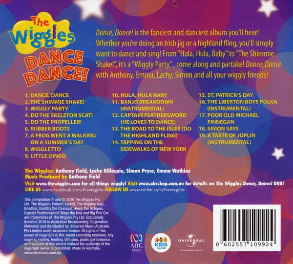 The Wiggles: Dance Dance! verze na CD v standardní edici. Toto konkrétní vydání vyšlo v Austrálii ve vydavatelství ABC for Kids ve spolupráci s ABC Music dne 17. ledna 2020. Album lze řadit do žánru Dětské.