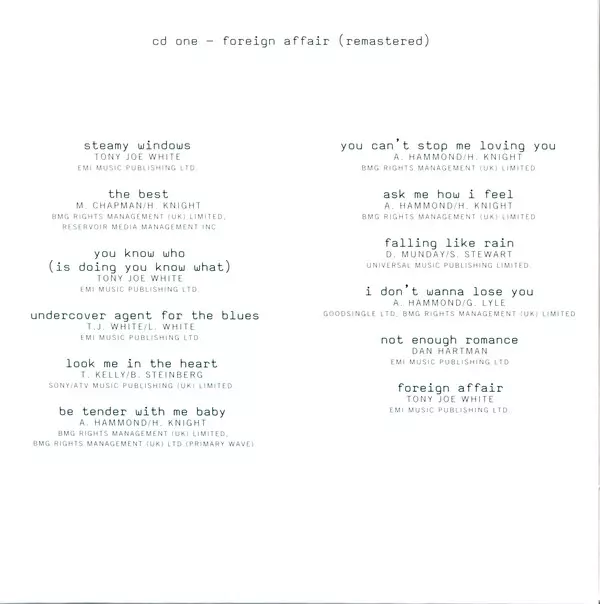 Přelomová reedice "Foreign Affair" Tiny Turner byla jedním z největších alb 80. let a ukázala Tinu Turner v její nejlepší formě, čímž ještě více upevnila její pozici královny rock'n'rollu. Deluxe verze alba vyjde 16. července a bude doplněna o vinylovou a CD verzi. Limitovaná edice deluxe box setu obsahuje původní album, poprvé kompletně remaste...