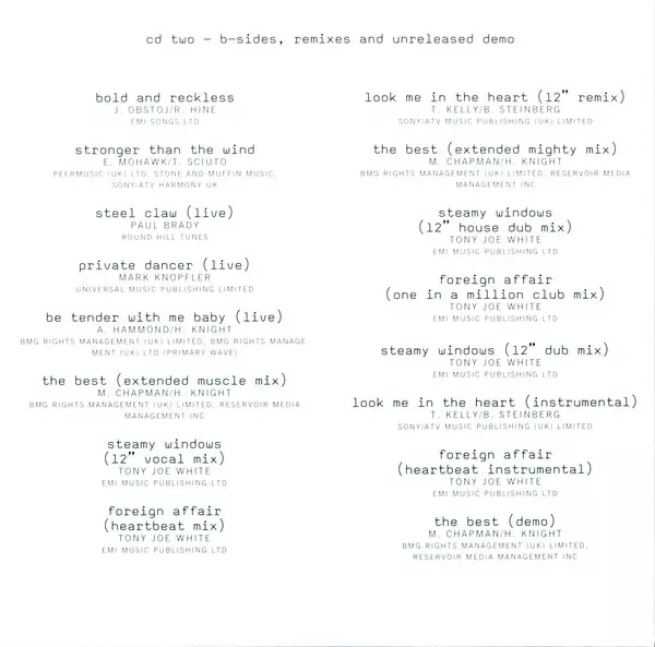 Executive-Producer Roger Davies, Tina Turner | Mixed By Chris Lord-Alge | Post Production, Remix Shep Pettibone | Producer Roger Davies, Tony Joe White | Written-By Tony Joe White