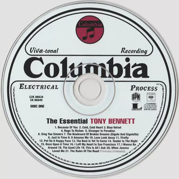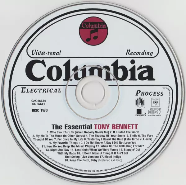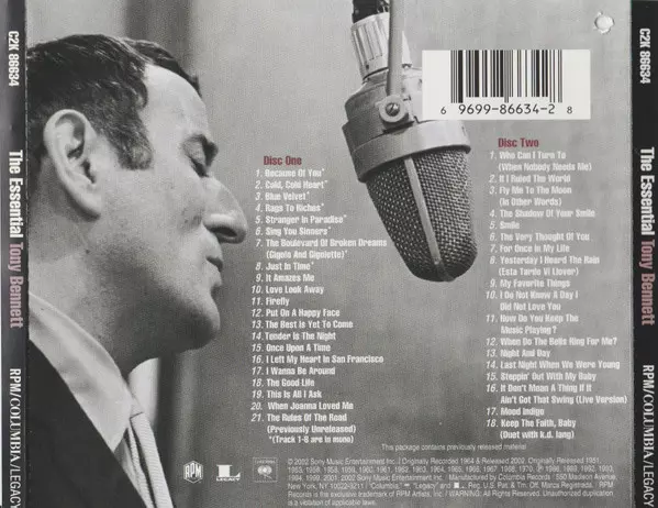 Tony Bennett: The Essential Tony Bennett verze na 2CD v standardní edici. Toto konkrétní vydání vyšlo v USA ve vydavatelství RPM Records (7) ve spolupráci s Columbia a Legacy dne 23. července 2002. Album zasahuje do žánrů Pop, Stage & Screen a Vokál.