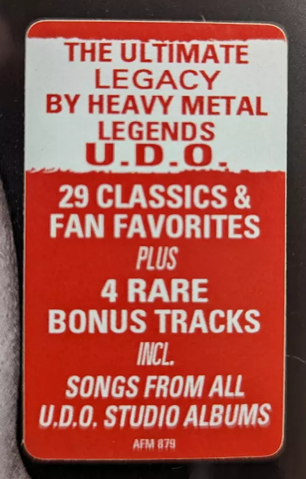 The Legacy - není lepší způsob, jak shrnout 35. výročí U.D.O. v mezinárodním metalovém světě. Třiatřicet skladeb z více než tří desetiletí hudební historie v balíčku na dvou CD. Pocta nesrovnatelné kariéře nesrovnatelné kapely. První Best Of kompilace po 15 letech 33 skladeb! Kompletní průřez celou mezinárodní tvorbou U.D.O. kariéry - kompilace...
