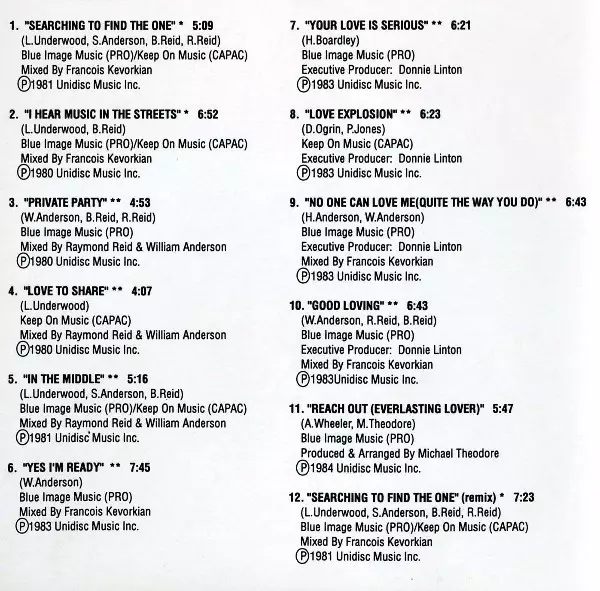 Mixed By François Kevorkian | Producer, Arranged By Bert Reid, Raymond Reid, William Anderson | Written-By Bert Reid, Lenny Underwood, Raymond Reid, Sandy Anderson (2)