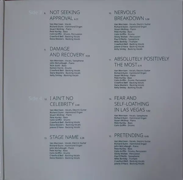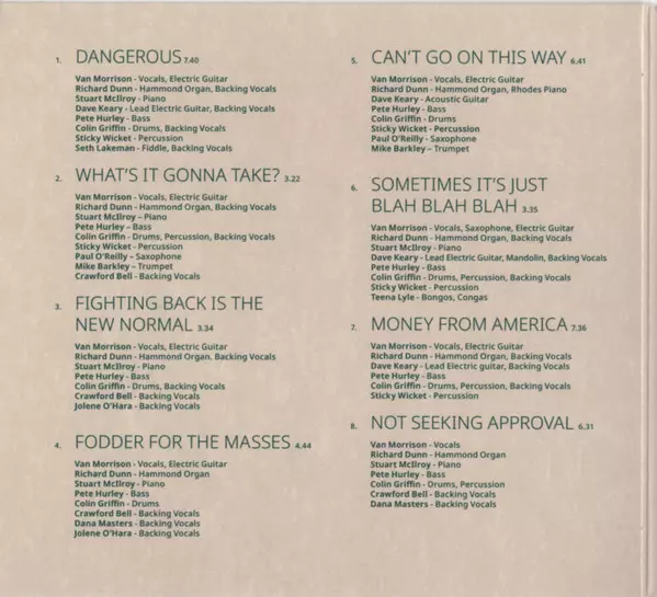 Backing Vocals Crawford Bell, Dana Masters, Kelly Smiley | Bass Nicky Scott | Drums Eamon Ferris | Piano John Mc Cullough | Vocals, Saxophone Van Morrison