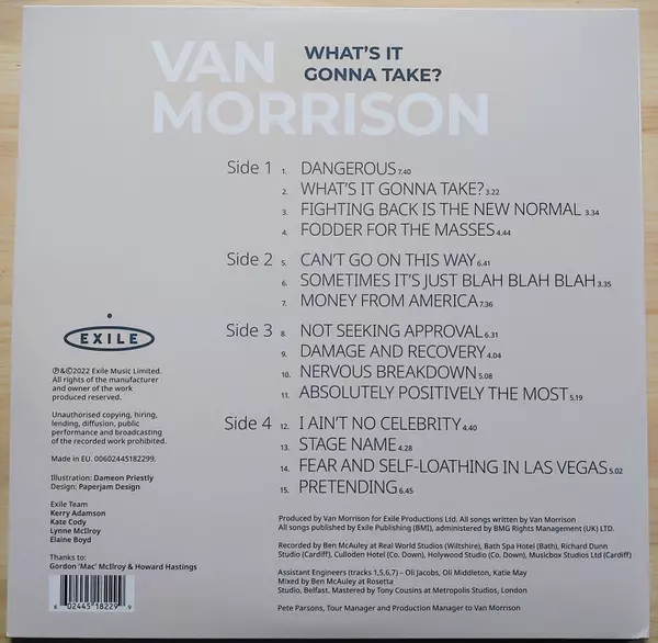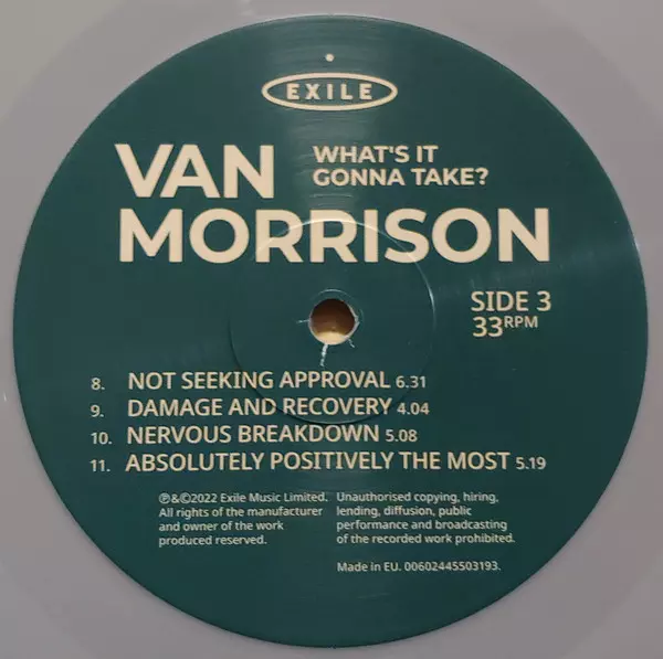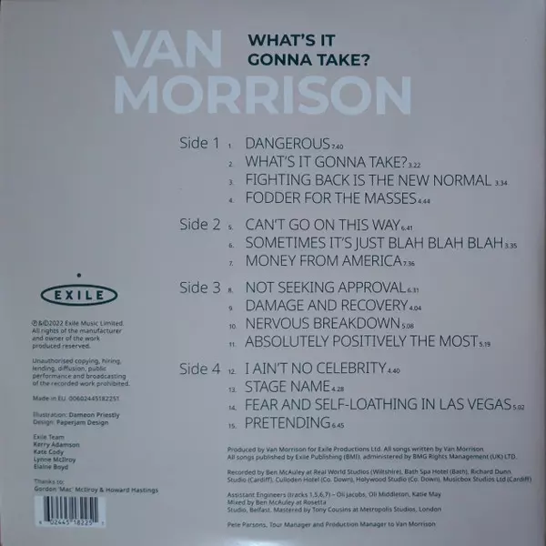 Van Morrison: What's It Gonna Take? LTD verze na vinylu 2LP v limitované edici. Toto konkrétní vydání vyšlo ve vydavatelství Exile ve spolupráci s BMG dne 20. května 2022.