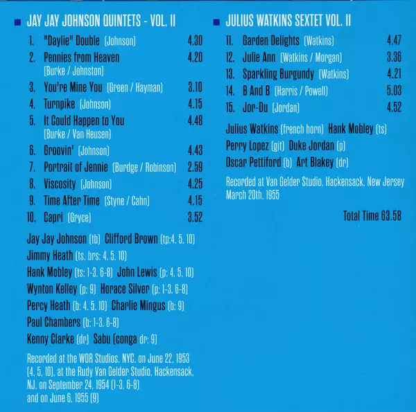 | Jay Jay Johnson - Jay Jay Johnson Quintets, Vol. II | |||