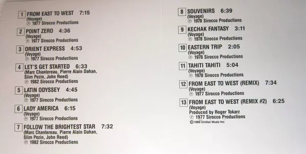 Voyage: The Best Of Voyage verze na CD v standardní edici. Toto konkrétní vydání vyšlo v Kanadě ve vydavatelství Unidisc dne 10. října 1991. Album zasahuje do žánrů Elektronická hudba, Funk / Soul, Disco a Hi NRG.