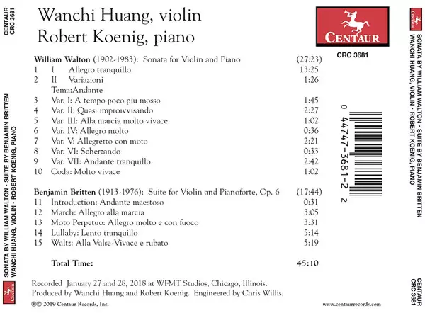 | Interpret | Benjamin Britten | Sir William Walton | Robert Koenig | Wanchi Huang |