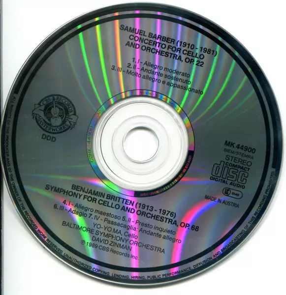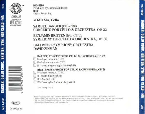 | Interpret | Yo-Yo Ma | Benjamin Britten | Samuel Barber | David Zinman | Baltimore Symphony Orchestra |