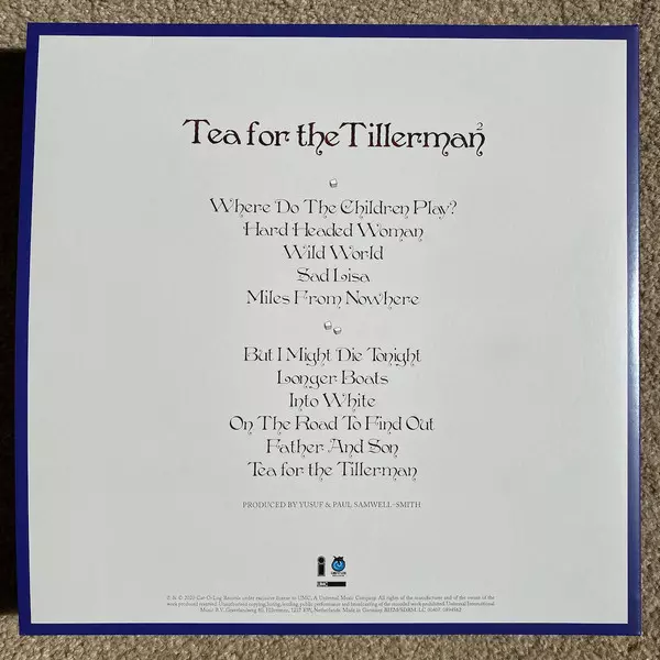 Cat Stevens: Tea For The Tillerman² CLR verze na vinylu LP v kolorované edici. Toto konkrétní vydání vyšlo v Evropě a USA ve vydavatelství Island Records ve spolupráci s Cat-O-Log Records a UMC dne 18. září 2020.