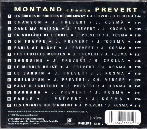 | Interpret | Yves Montand | Jacques Prévert |